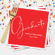 Papier-Servietten enthalten das Wort GRAD zusammen mit dem Namen und dem Unterrichtsjahr Ihres Absolventen in schicken weißen Schriftzeichen auf Rot oder einer unserer für Sie fertigen Schulfarben.