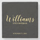 Moderner Script Personalisiert Trauzeuge Untersetzer mit personalisiert Trauzeugen Namen im modernen Schriftart-Stil mit Titel und Hochzeitdatum in modernen Sans Serif Schriftart Stil auf schwarzem Hintergrund. Auch perfekt für Trauzeuge, Vater der Braut und mehr. Bitte beachten Sie: Die Details der Folie werden im Kunstwerk simuliert. Bei der Herstellung dieses Produktes wird keine Folie verwendet.