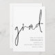 Moderner Abschluss Grad Save the Date. Verfügbar in digitaler Form und gedruckt. Dieses einfache monochrome Design verfügt über ein formloses Set-Handschrift-Stift-Skript für den Haupt-Header, den Hauptgrad und die leicht zu personalisierende Typografie auf der unteren rechten Seite mit Ihren Details. Kann über die Editieroption in beliebige Farben geändert werden.