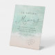 Schöne türkisfarbene abstrakte Aquarell glitzernde Ozeanwelle und Herzen im Hintergrund des Sandstrandes, mit stilvollem Drehbuch und eleganten Serif-Schriftart, modern und einfach. Tolle Erinnerungszeichen für nautisches Brautparty, Hochzeit am Strand, Geburtstag, Graduiertenfeier, Ruhestand Party, Beerdigung, etc. Moderne Script Beach Hearts Wedding