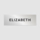 Modernes Mitarbeiternamensschild mit silberfarbenem Imitat auf metallischem Hintergrund. Fügen Sie Ihren Namen in einfacher Typografie hinzu.