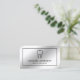 Elegante Visitenkarte mit moderner Typografie auf einem silbernen Imitat Hintergrund. Fügen Sie Ihren Namen und Ihre Kontaktdaten hinzu, um einen bleibenden ersten Eindruck zu machen.