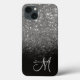 Geben Sie Ihrem iPhone eine moderne und mädchenhafte Touch mit diesem eleganten Cover. Mit einem luxuriösen silbernen Glitzer-Ober auf einem soliden schwarzen Hintergrund, ermöglicht dieses Design es Ihnen, das Monogramm mit Ihren eigenen Initialen oder Details anzupassen. Ideal für ein stilvolles und personalisiertes Telefonzubehör.
