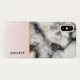 Ein Casematgehäuse mit elegantem und modernem Marmormuster. Weißer, schwarzer und rauchiger grauer Marmor mit dünnen Bändern von Imitat-Gold-Wirbel im ganzen Muster. Ein hellrosa Farbverlauf unter dem marmorierten Muster.