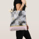 Tasche mit elegantem und modernem Marmormuster. Weißer, schwarzer und rauchiger grauer Marmor mit dünnen Bändern von Imitat-Gold-Wirbel im ganzen Muster. Ein hellrosa Farbverlauf unter dem marmorierten Muster.