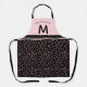 Moderne Spots Individuelle Name & Monogram Pastel Pink & Black Schürze, fügen Sie einfach Ihren eigenen Familiennamen oder Text und Anfangsbuchstaben. Ein farbeditierbares Design, alle Elemente können auf jede gewünschte Farbe geändert werden, indem Sie auf diese Vorlage personalisieren klicken und am unteren Rand des Textzeichens weiter anpassen. Chic Retro-Stil Allover Print-Schürze, mit Kuh-Tier-Druck und niedliche Schuppen-Leiste. Ein Vergnügen zusätzlich zur Küchendekoration.