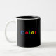Moderner, mehrfarbiger Text auf schwarzer Tasse. Text kann personalisiert sein.