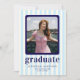 Feiern Sie stilvoll mit unserer schicken und modernen Abschluss-Ankündigungskarte. Dieses Design mit spielerischen, hellblauen und cremefarbenen Streifen ist mit feinem Marinetext geschmückt und bietet einen lebendigen und zeitgenössischen Flair. Es ist perfekt auf die Präsentation Ihrer hochgeschätzten Fotos zugeschnitten und ist eine raffinierte Art, Ihren Abschluss anzukündigen.