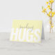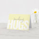 Dieses schlichte, moderne Design, das mit Freundlichkeit und Zuneigung gepackt ist, hat einen "Sende-Hugs"-Text in einer Kombination aus fett gedrucktem und handgeschriebenem Skript auf der Vorderseite der Karte. Der hellgelbe Hintergrund ist eine beliebte Farbwahl und trägt zum zeitgenössischen Look der Karte bei. Inside text ist ein nachdenklicher Ausdruck, der als geschrieben oder personalisiert mit dem von Ihnen gewünschten Insidertext bestellt werden kann. Diese Karte ist nicht nur eine gute Wahl für besondere Anlass wie den Valentinstag, sie eignet sich auch hervorragend, um jemandem, der krank ist, einen Pick-up braucht oder vielleicht ein Familienmitglied oder Freund, der allein oder in einer Zuhause lebt, eine umsichtige Karte zu schicken. So viele Möglichkeiten, jemandes Tag mit dieser einfachen Karte zu erhellen.