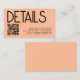 Moderner Text QR Code Peach Wedding Details kleines Gehäuse macht es bequem für Ihre Gäste, mehr Details zu sehen, indem Sie Ihren QR-Code zu Ihrer Hochzeitswebsite scannen. Ein einfaches, vollständig anpassbares typografisches Design. Personalisieren Sie die Wörter einfach auf Ihre eigenen. Ihr QR-Code wird automatisch generiert, um den Beispielcode im Design zu aktualisieren, wenn Sie einfach die Beispiel-URL in der Vorlage mit Ihrer eigenen Hochzeitswebsite-URL ändern. Sie können auch Text- und Hintergrundfarben ändern, wenn Sie möchten, indem Sie über die weitere Option, um Ihre Hochzeitsfarbe Thema anpassen.