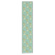 Mit diesem modernen Tischläufer aus der Mitte des Jahrhunderts, der in den 50er Jahren ein akustisches Muster aus aquamarinem Senfgelb und weichem Creme aufweist, heben Sie Ihren Tisch auf. Mit seinen Vintagen Formen und spielerischen Linien eignet sich dieser Läufer hervorragend für Retro-Dinner-Party, Babyduschen oder das stilvolle, alltägliche Dekor. Ein absoluter Akzent für Fans von Mod-Design und atomaren Interieurs.