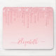 Modernes, elegantes und trendiges Pink Blush Glitzer Mouse Pad personalisiert mit Ihrem Namen. Stilvolles Skript. Glitzer mit Glitzern trinken.