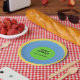 Moderner und lebendiger, benutzerdefinierter Text Pappteller