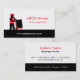 Moderne, glatte Visitenkarte mit Rot und Schwarzes. Die Geschäftskarte hat eine Silhouette eines Urhebers in einem roten Hut- und Polot-stück und zart bewegt einen enormen Kasten unter Verwendung einer Laufkatze. Große Visitenkarte für jedermann, das im LKW-Transport, in der Lieferung sind und Dienstleistungen, Transport, Logistik oder bewegliche Geschäfte schleppen. Personifizieren Sie leicht mit Ihren Geschäftsdetails.