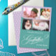 Moderne bunte Foto Collage Godvater Vorschlag Karte. Das Design umfasst 4 Fotos des Babys auf rosa und kirschlicher Basis, das Typografie-Drehbuch ''Wilkommen du mein Pate'' in trendiger, weißer Schrift. Personalisieren Sie weitere mit Godvaters Namen und Babynamen.