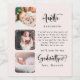 Modernes Foto Collage Godmatt Angebot Flaschenlabel. Design bietet 3 Fotos des Babys, Typografie-Skript, werden Sie meine Godmutter auf einem rot rosa Hintergrund.