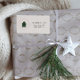 Elegantes coquette-inspiriert Weihnachtslabel mit einem Kiefernbaum mit rotem Bogen und Platz für Ihren Familiennamen. Ideal, um Ihren Urlaubskarten und -geschenken eine festliche, personalisierte Touch hinzuzufügen.