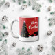 Dieses schöne, einfache Design zeigt zwei Bären, die einen verzierten Weihnachtsbaum bewundern, mit einem modernen frohen Weihnachten in der Schrift. Eine wunderschöne Tasse für gemütliche Kakaobehandlungen!