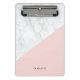 Moderner weißer Marmor mit rosa Block Personalisie Mini Klemmbrett