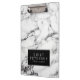 Moderner weißer Marmorstein mit schwarzem Hintergr Klemmbrett