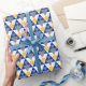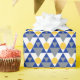 Dieses Muster ist ein abstrakter Blick auf eine Winterlandschaft mit Kiefernbäumen und einer untergehenden Sonne, was zu einem modernen geometrischen Design führt.