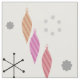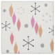 Ein Retro-Design aus der Atomzeit mit einem Weihnachtsthema. Verfügt über silberne Schneeflocken und rote, orangefarbene und lila Weihnachtsbaumschmuck.