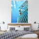 Ein schwacher Schuss fängt einen hochragenden, modernen Wolkenkratzer an, der gegen einen hellblauen Himmel mit weich weißen Wolken steht. Die Fassade des Gebäude wird von glänzenden, reflektierenden Glaspaneelen dominiert, die ein Gefühl von Tiefe und Grandeur schaffen. Das Glas reflektiert Himmel und Wolken und verwischt die Linien zwischen dem Gebäude und seiner Umgebung. Das Bild erinnert an ein Gefühl städtischer Raffinesse und architektonischer Leistungsfähigkeit.