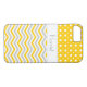 Moderne Maisgelb, grau, weiß Zickzack und polka dot pattern i iPhone 6 case. Ein stilvolles, elegantes, mädchenhaftes Design mit klassischen Zickzackstreifen und niedlichen Polka-Punkten mit zeitgemäßem, aber Vintagem Look. In der Mitte ist ein Rahmen. Sie können die Hintergrundfarbe - Maisgelb und Textfarbe aus über 200 Farben aus dem Zazzle Farbdiagramm wählen.