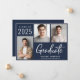 Moderne dunkelmarineblaue Abschluss-Ankündigung mit 3 Fotos und "Graduate" in einem zeitgenössischen fett-weiß Drehbuch. Fügen Sie den Namen, das Unterrichtsjahr und die Schule oder Universität in einfachen weißen Typografie.