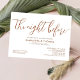 Élevez votre dîner de répétition mariage avec notre invitation à dîner de répétition Mariage "La nuit avant". Avec une élégante calligraphie brune sur un arrière - plan blanc propre, cette invitation incarne la simplicité et le raffinement modernes. Idéal pour les couples qui apprécient une esthétique minimaliste, ce design est parfait pour n'importe quel thème mariage, du rustique au boho-chic. Que vous planifiez un événement d'inspiration vintage ou une célébration audacieuse et moderne, cette invitation donne le ton pour une soirée inoubliable. Dans le cadre de vos décorations et de vos fournitures de repas de répétition, cette carte complète tout décor, assurant une présentation cohésive et élégante. Faites une impression durable avec cette invitation intemporelle et élégante.