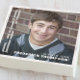 Dieses Design verfügt über ein Abschluss Graduate Party, Foto Bild 1, mit Blockskripttypografie, minimalistisch Stil, trendig stilvoll, einfach gefeiert Schriftart Senior Design, eine moderne elegante Klasse der klassischen, schicken High School oder Uni, weiße Text Overlay, Cocktail Servietten Vorräte