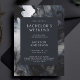 Ein modernes minimalistisches Junggesellenwochenende - oder verändern Sie den Text und machen ihn zu einer Bachelor-Party Einladung - modern, aber elegant! Abstrakte fließende Formen in Schwarz, Dunkelblau, Grau und Weiß mit einem digitalen Kunstgemälde im Stil von flüssiger Tinte. Die perfekte Wahl für einen stilvollen Bräutigam und Herren.