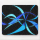 Ein modernes abstraktes schwarzes und blaues mousepad mit einem coolen farbigen Bleistiftzeichnen eines gewellten blauen gerippten Fisches.