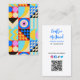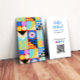 Dieses lebendige Design wurde von mir mit bunten, abstrakten geometrischen Formen geschaffen. Der Text ist einfach mit dem QR-Code, mit einer eigenen URL Ihrer Wahl, angepasst.