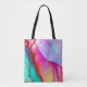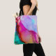 Eine Schultertasche mit extravagantem künstlerisch abstraktem Design. Aquarellmalerei mit Farbmischungen und Vermischungen, die ein angenehmes fließendes Muster schaffen.