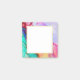 Kleine quadratische Post-it-Noten mit einem extravaganten künstlerisch abstrakten Design. Aquarellmalerei mit Farbmischungen und Vermischungen, die ein angenehmes fließendes Muster schaffen. Ein weißer Rahmen mit einem goldenen Rahmen aus Imitaten, der oben platziert ist, damit Sie drinnen schreiben können.