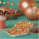 Retro 60er Mod Futuristic Bubble Pattern in Braun Orange und Gelb.