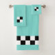 Modernes Abstraktes Schwarz/Weiß auf Aquamarin Badhandtuch Set