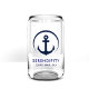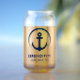 Ein modernes Dosenglas für Ihr Boot mit einer einfachen marineblauen Abbildung eines Ankeres, den Sie mit dem Logo Ihres Bootes behalten oder ersetzen können. Personalisieren Sie mit dem Namen und der Lage Ihres Bootes in marineblauer Typografie.