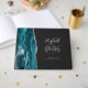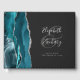 Modernes Aquamarines Blue Agate Silver Script Dark Gästebuch