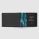 Dieses elegante Gästebuch besticht durch ein aquamarines blaues Aquarelldesign, das mit Imitaten bestickt ist, die mit silberfarbenem Glitzer verziert sind. Einfach den silbergrauen Text auf schwarzem Hintergrund anpassen, mit den Namen der Braut und des Bräutigams in skurriler Handschrift Kalligraphie über einen großen grauen Ampersand. Fügen Sie dem Vorder- und Rückgrat einen zusätzlichen Text Ihrer Wahl hinzu.