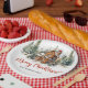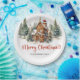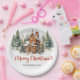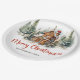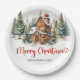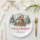 Klassische Weihnachtsfeiertage mit ewiger Aquarellbilderung im Pinienwald im Winter mit roten Heiligbeeren und Weihnachtsbaum. Personalisieren Sie den Text einfach oder verließ ihn leer. Violetdrucke ©