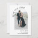 Diese moderne Boho-Hochzeit, die sich durch ihre Einfachheit und ihren künstlerischen Stil auszeichnet, bewahrt den Pop der Dattelkarte mit einem bogenförmigen Fotoplatt auf der Vorderseite der Karte und lädt das gewünschte Foto hoch. Auf der Vorderseite der Karte befindet sich eine Textvorlage, die Sie mit den Namen der Braut und des Bräutigams und dem geplanten Hochzeitstag personalisieren können. Auf der Rückseite dieser Karte befindet sich eine Beispielmeldung mit zusätzlichen Details, die Sie personalisieren können. Diese Karte ist hier mit einem schlichten, weißen Hintergrund dargestellt und ist auch in anderen Farben erhältlich.