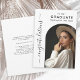 Diese zeitgenössische Abschluss-Ankündigung hat eine Fotovorlage, die Ihr gewähltes vertikales Foto in eine beliebte Bogenform mit einem schlichten, weißen Hintergrund setzt. Glückwunsch wird in einem handgeschriebenen Skript-Schriftart mit zusätzlichem Text, der den Namen des Absolventen auf der Vorderseite der Ankündigung enthält, zusammen mit einer Textvorlage auf der Rückseite, die die Namen der Eltern, den Namen des Absolventen, den Namen der Schule, das Klassjahr und die Pläne für Uni/Universität enthält, verfasst. Der gesamte Text kann mit Ihrer gewünschten Formulierung bearbeitet werden. Diese Ankündigungen können als qualitativ hochwertige gedruckte Ankündigungen auf Kartenmaterial für den Versand bestellt werden oder als papierlose digitale Downloads für den elektronischen Versand.