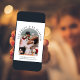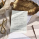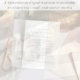 Moderne Eleganz oder private Hochzeitsankündigung und Einladung zum Empfang. Die Vorderseite zeigt Ihr Foto in einem Bogenrahmen und "Esst Drink and Be Verheiratet" in eleganter Serifentypografie. Fügen Sie Ihren Vornamen, Empfang und Ort hinzu. Auf der Rückseite, personalisieren Sie Ihre Daten und fügen Sie Ihre Namen in einem signaturähnlichen Skript.