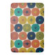 Mitte Jahrhundert moderne Atomdots Retro Muster Bath Mat. Niedliches, lustiges, farbenfrohes Design mit einer Mitte des Jahrhunderts Vintagen modernistischen Ästhetik. Ein Hinweis auf das Zeitalter des Weltraums, die Atomära und die Designstile der 1950er und frühen '60er. Von Kierkegaard Design Studio.