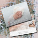 Elegant süße Geburts-Ankündigungen zeigen Ihr liebstes neugeborenes Foto in voller Blüte mit dem Namen Ihres Babys und den Geburtsstatistiken in weißer, schicker Schrift vorne. Eine Foto-Collage und die Namen der Eltern auf der Rückseite. **TIPP: Sie können die 2 quadratischen Fotos auf der Rückseite vergrößern, BEVOR Sie sie für eine einfache Platzierung hochladen. PASSENDE Artikel in unserer Sammlung.