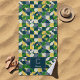 Mit diesem schicken Strandtuch mit modernem Bauhaus-Muster stärken Sie Ihr Stranderlebnis. Das abstrakte geometrische Motiv und die lebhaften Farben machen es zu einem herausragenden Element, um den Sand aus den Augen zu verlieren. Fügen Sie Ihren Namen und erste, um es einzigartig Ihren. Ideal für Party am Pool, Strandausflüge oder für Familien. Lassen Sie sich mit diesem stilvollen Strandtuch von der Sonne verwöhnen.
