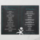 Schöne, weiße Seesterne, Muschel und gepunktete Wirbel und Glitzer + türkisfarbene Sonnenformen + Imitate Chalkboard-Textur entworfen für maßgeschneiderte Hochzeitsfeierprogramme. Das Programm ist so konzipiert, dass es in der Mitte in der Mitte gefaltet wird. Angesagtes, elegantes und einzigartiges Hochzeitspapier-Design, das Sie ganz einfach für Ihr STYLISH BEACH WEDDING anpassen können | CHIC-HOCHZEIT IN URLAUBSORT | HAWAIIAN WEDDING oder FUN SOMMER WEDDING (Hier finden Sie die passenden Hochzeitsessentials & -favors in Bridal Heaven. Wenden Sie sich an ujean4791@gmail.com, um sich mit der Arbeit und/oder der Koordinierung von Hochzeitsaufträgen zu befassen.)