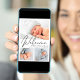 Eine schlichte und elegante, moderne Geburtsankündigung mit einer 3-Foto-Collage Ihres Neugeborenen, überlagert mit "Welcome" in einer stilvollen Schrift. Geben Sie den Namen, das Geburtsdatum und die Geburtsdaten Ihres Babys ein. Fügen Sie auf der Rückseite ein weiteres Foto und eine personalisierte Meldung hinzu.